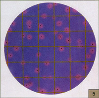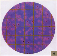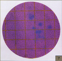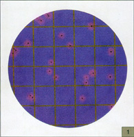 ![]() Petrifilm 圖形的生長(zhǎng)面積大約30平方公分.可以 估算方式,先數(shù)三個(gè)方格內(nèi)粉紅色環(huán)帶的數(shù)量,在乘以10,即為所有在圖形培養(yǎng)范圍內(nèi)的菌落數(shù). |