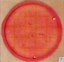 Estimated total coliform count=220 測(cè)試片面積約為20cm2,當(dāng)菌落數(shù)超過150個(gè),為了估計(jì)菌落數(shù)可選擇其中一個(gè)或數(shù)個(gè)有代表性菌落的小方格(1cm2)計(jì)算平均菌落數(shù),在乘以20方向得到整個(gè)測(cè)試片上的菌落數(shù). 菌落太多時(shí)需進(jìn)一步稀釋樣品,方能獲得準(zhǔn)確計(jì)數(shù). |