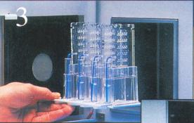 VITEK automates all the steps needed to perform identification tests, using VITEK cards. It comprises a filler/sealer, an incubator/reader, a computer and a printer. The filler/sealer enables inoculation of cards within a few minutes. The incubator/reader simultaneously incubates and reads the cards, and has a capacity of between 32 and 480 cards depending on the model. The computer with its VITEK software continuously monitors the operations under way, stores values, processes and interprets results.